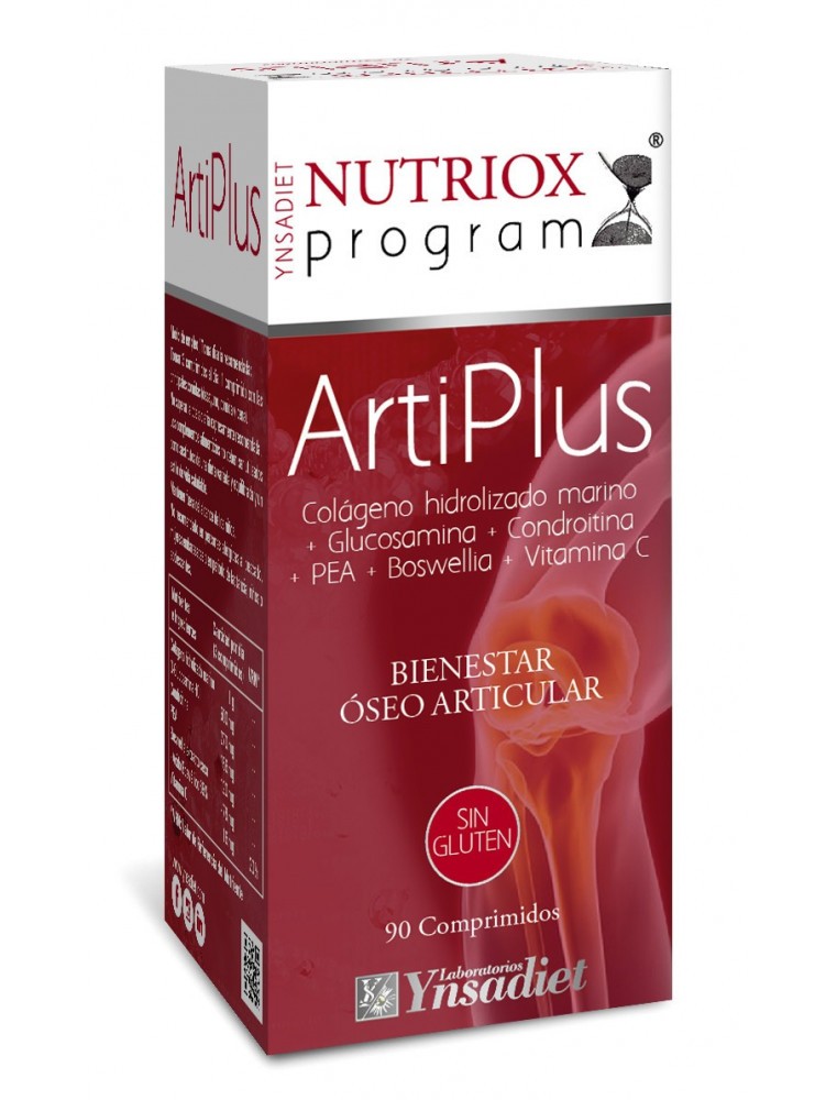 Colágeno hidrolizado marino (derivado de pescado), Agente de carga (Celulosa, Fosfatos de calcio, Hidroxipropilcelulosa, Carboximetilcelulosa sódica), D-Glucosamina (Clorhidrato de Glucosamina), Sulfato de condroitina 90% (derivado de pescado), PEA (Palmitoiletanolamida), Boswellia extracto seco (65% Ac. Boswélico) (Boswellia serrata, resina), Antiaglomerantes (monoglicéridos de ácidos grasos, Dióxido de silicio, sales magnésicas de ácidos grasos), Aroma (Vainilla), Vitamina C (Ascorbato sódico).